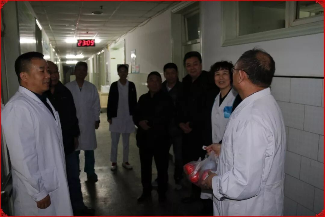 院领导对坚守一线职工表示亲切问候的同时,还详细了解各个病区留院病人的病情状况,询问节日期间的排班情况,并要求医务工作者要注重医疗安全,提高服务质量,保证患者在院所有诊疗活动正常进行。
